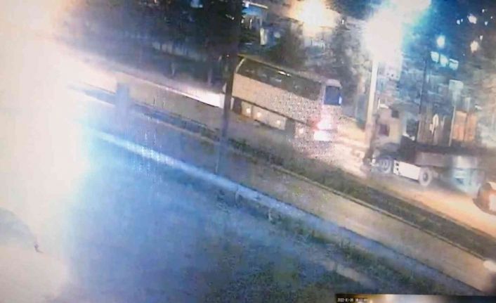 Öte yandan olay anı güvenlik kameraları tarafından saniye saniye kaydedildi. Görüntülerde, ara sokaktan gelen tırın yan yol üzerindeki otobüse çarptığı, ön camdan fırlayan Feride K.’nın üzerine çıktığı kaydedildi.