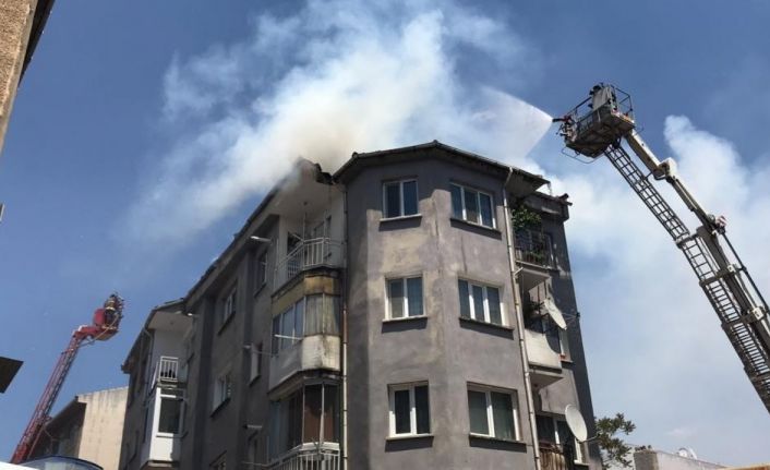 Eskişehir’de dört katlı bir binanın çatı katında meydana gelen yangın paniğe neden oldu.