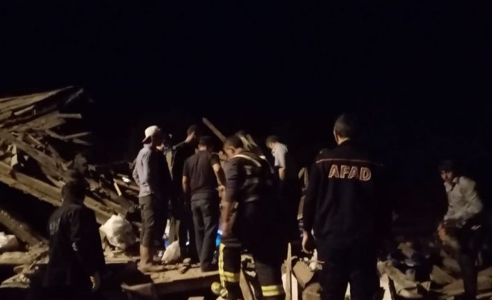 Ev çökünce altındaki ahırda bulunan 2 büyükbaş hayvan telef oldu