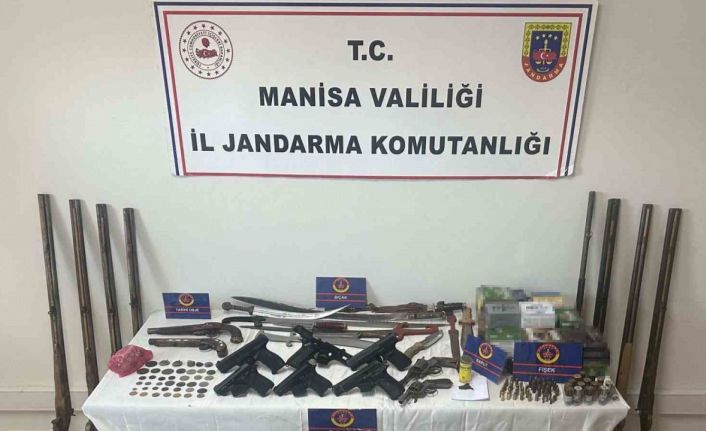Manisa İl Jandarma Komutanlığı KOM Şube Müdürlüğü ekipleri tarafından bir eve düzenlenen baskında çok sayıda ruhsatsız silah, mühimmat ve tarihi eser ele geçirilirken 1 kişi de gözaltına alındı.