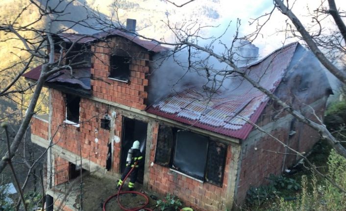 Yangında can kaybı yaşanmazken, ev kullanılamaz hale geldi.