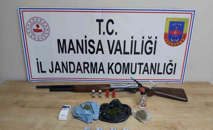Manisa’nın, Alaşehir ilçesine bağlı Baklacı Mahallesinde gece yarısı Alaşehir İlçe Jandarma Komutanlığı Merkez Jandarma Komutanlığı ve Alaşehir 7’nci JASAT timi tarafından yapılan istihbarat çalışmaları sonucunda H.E.(E/47) isimli şahsın uyuşturucu madde sattığı yönünde duyum alındı. Çıkarılan arama kararının ardından şüpheli şahsın ev ve eklentilerinde yapılan aramada tuvaletin gider kısmına atılmış poşetli 200 gram kubar esrar maddesi, misafir odası kısmında torba içerisinde yaklaşık 50 gram kubar esrar maddesi, sobanın içerisine dökülmüş vaziyette yaklaşık 70 gram kenevir tohumu, 1 adet uyuşturucu içme aparatı ve dolap içerisinde 1 adet ruhsatsız otomatik av tüfeği, çatıda güvercin kümesine saklanmış 40 adet uyuşturucu ilaç ele geçirildi. Uyuşturuculara ve tüfeğe jandarma tarafından el konulurken H.E. gözaltına alındı. H.E.’nin bugün adli mercilere tutuklanma talebi ile sevk edileceği öğrenildi.