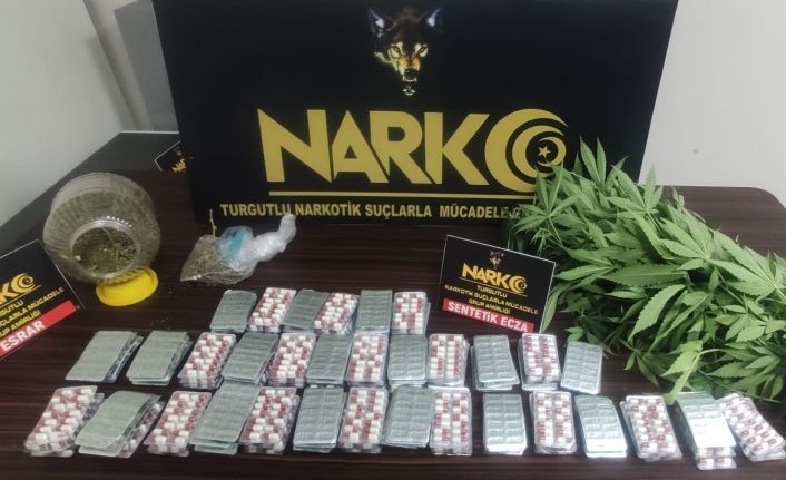 Turgutlu Narkotik Suçlarla Mücadele Grup Amirliği görevlilerince uyuşturucu veya uyarıcı madde ticareti yapan, nakleden ve kullanan şahıslara yönelik yapılan çalışmalarda; uyuşturucu ticareti yaptığı yönünde bilgiler alınan Y.K.’nın evinde yapılan aramada; 1777 adet 300 mg sentetik ecza hapı, toplamda 3 parça halinde 400 gram esrar maddesi ve 8 kök kenevir bitkisi ele geçirildi. Gözaltına alınan şüpheli şahıs uyuşturucu madde ticaretinden bugün adli mercilere sevk edilecek.