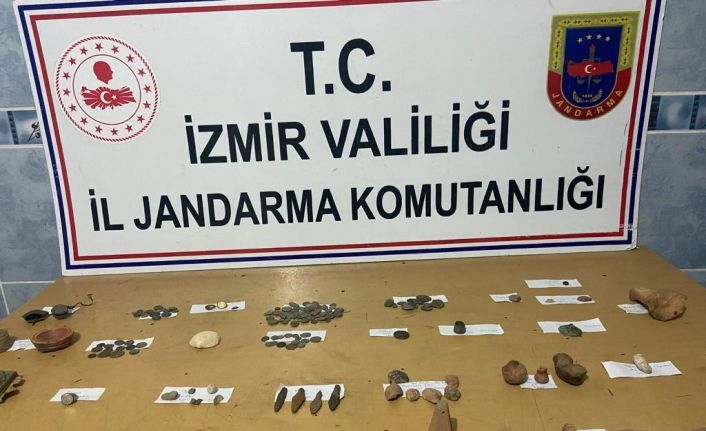 İzmir’in Bergama ilçesinde jandarma ekipleri tarafından bir adrese yönelik gerçekleştirilen operasyonda, Helenistik, İslami, Roma ve Osmanlı dönemine ait olduğu değerlendirilen 165 parça tarihi eser ele geçirilirken, olayla ilgili 1 şüpheli gözaltına alındı.