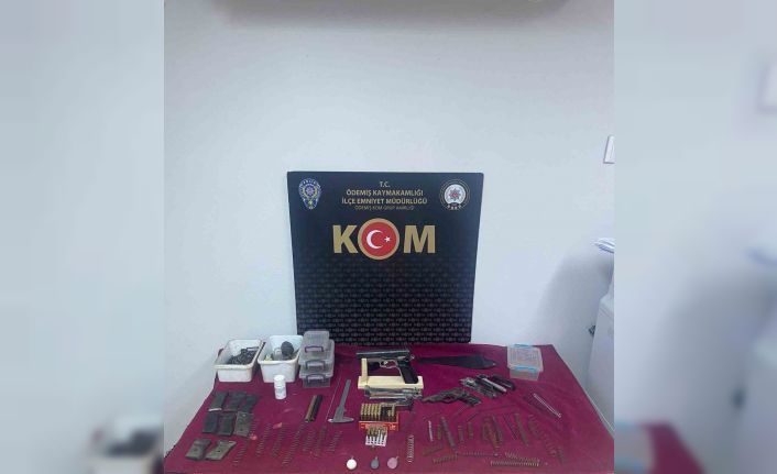 Ödemiş Kaçakçılık ve Organize Suçlarla Mücadele (KOM) Büro Amirliği ekipleri, ilçede ikamet eden S.K. adlı bir kişinin evinde, ücret karşılığı kurusıkı silahların namlusunu açtığı ve bu işin ticaretini yaptığını belirledi. Ödemiş Cumhuriyet Başsavcılığı koordinesinde belirlenen adrese düzenlenen operasyonda, 1 kurusıkıdan çevirme tabanca, 1 tabanca gövdesi, 12 adet fişek, tabanca namlusu yapılacak metal borular, 28 adet tabanca icra yayı ve namlu yayı, çok sayıda namlu açımında kullanılan malzeme, 105 adet şarjör yayı ve 20 adet kabze ele geçirildi.