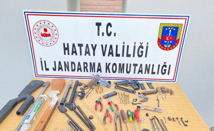 Hatay’ın Erzin ilçesinde silah tamir atölyesine çevrilen evde çok sayıda silah parçaları, fişek ve bakım onarım malzemeleri ele geçirildi.