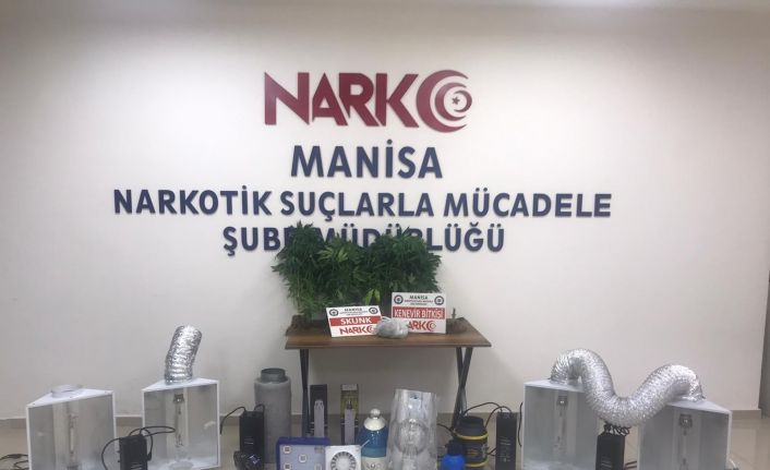 Manisa İl Emniyet Müdürlüğü Narkotik Suçlarla Mücadele Şube Müdürlüğü görevlilerince uyuşturucu veya uyarıcı madde imal ve ticareti yapan şahıslara yönelik yapılan çalışmalar kapsamında Yunusemre ilçesinde bir ikamette yapılan aramada, 5 kök Hint Keneviri maddesi, 69,69 gram Skunk maddesi ile uyuşturucu madde imal etmek amacıyla kullanılan, 8 adet ışıklandırma sistemi, 5 adet güç kaynağı, 1 adet havalandırma filtresi, 2 adet havalandırma borusu, 2 adet pervane, 1 adet buhar makinesi, 1 adet akım ölçer ve 1 adet spreyleme aparatı ele geçirildi. Konuyla ilgili 1 şüpheli uyuşturucu veya uyarıcı madde imal ve ticareti yapmak suçundan gözaltına alınırken, zanlı sevk edildiği adli makamlarca tutuklandı.