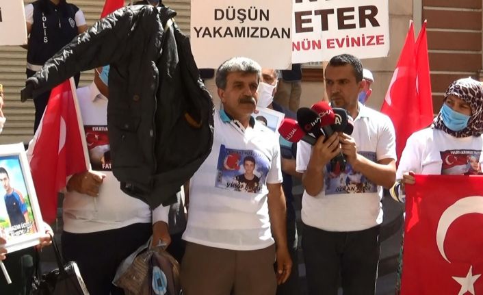 Evlat nöbetindeki baba, HDP il binasından çıkan oğlunun montunu gösterdi