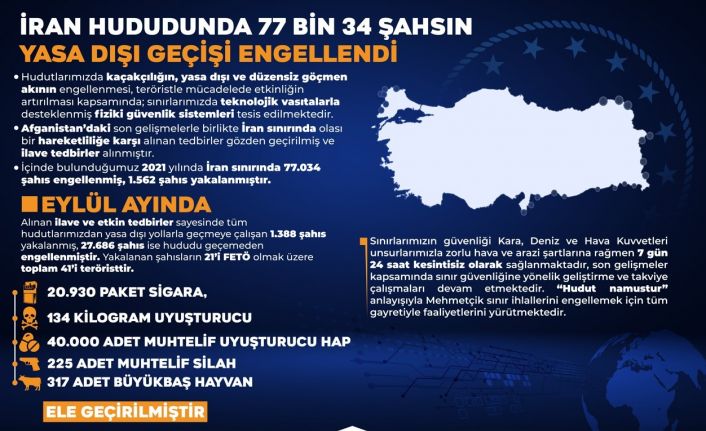 “2021 yılında İran sınırında 77 bin 34 şahıs engellenmiş, bin 562 şahıs yakalanmıştır”