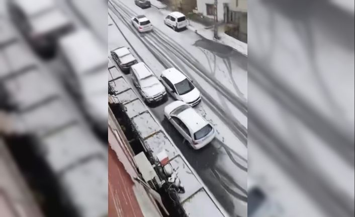 Eyüpsultan’da aralıklarla etkili olan kar yağışı beraberinde kazaları da getirdi. Yokuş aşağıya kayarak ilerleyen otomobil, park halindeki araçlara çarptı. Yaşanan kaza anı ise cep telefonu kamerasına yansıdı.