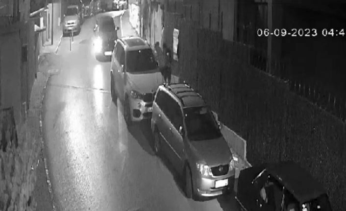 Lüks araçta 370 bin lira değerinde hasar oluşurken, hırsızlık anı bir binanın güvenlik kamerası tarafından saniye saniye görüntülendi.