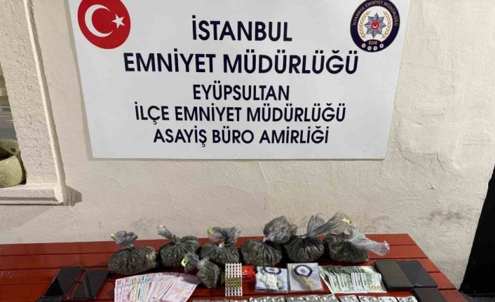 İstanbul Emniyet Müdürlüğü Eyüpsultan İlçe Müdürlüğü Ekipleri "Uyuşturucu Madde İmal ve Ticareti" suçunun önlenmesi, şüpheli şahısların tespit edilerek yakalanmasına yönelik operasyon gerçekleştirildi. Polis ekipleri, bir adreste uyuşturucu madde ticareti yapıldığı tespit etti. Adrese gerçekleştirilen operasyonda R.T., A.H.S., İ.T., A.K., M.A.A., Ş.Ö., D.Y., B.Ş. ve A.G. isimli 9 şüpheli yakalandı. Adreste yapılan aramalarda 651.9 gram skunk esrar, 2.30 gram taş kokain, 1.80 gram kokain, 327 adet uyuşturucu hap ve 15 adet fişek ele geçirdi. Şüphelilerin çeşitli suçlardan çok sayıda kayıtlarının olduğu tespit edildi.