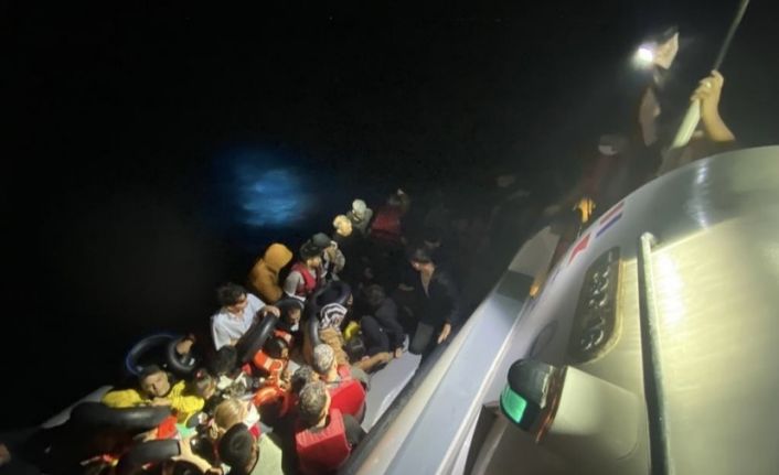 Çanakkale’nin Ezine ilçesi açıklarında hareket halindeki durdurulan lastik bot içinde 56 kaçak göçmen Sahil Güvenlik ekiplerince yakalandı.