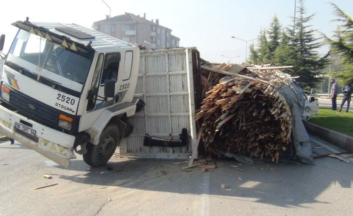 Bursa’nın İnegöl ilçesinde odun yüklü kamyon, ana yolda ilerleyen kamyonetin üzerine devrildi. Facianın eşiğinden dönülen kazada kimsenin burnu bile kanamadı.