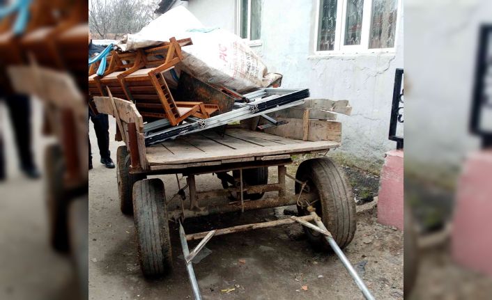 Tekirdağ’ın Çorlu ilçesinde fakülte çevresindeki yaklaşık 350 kilo demiri at arabasına yükleyerek çalmaya çalışan at arabalı şahıslar polisi görünce bıçak çekerek kaçtı.