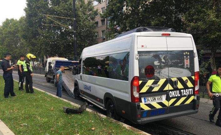Fatih’te tramvay yoluna giren bir servis minibüsü, orta refüje çıkarak kaza yaptı. Kazadan dolayı tramvay seferleri aksarken, minibüs sürücüsünün alkollü olduğu öğrenildi.