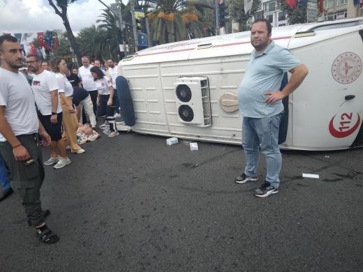 Fatih Vatan Caddesi’nde hafif ticari araçla çarpışan içinde hasta bulunan ambulans devrildi. Kazada yaralanan hasta başka bir ambulansla hastaneye kaldırıldı. 2 sağlık personeli ise kazayı hafif yaralı şekilde atlattı.