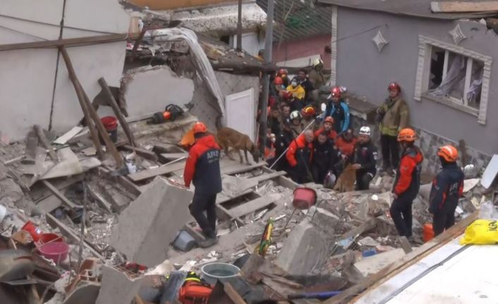 Fatih’te çöken binada enkaz altında kalanları kurtarma çalışmasına hassas burunlu köpekte katıldı.