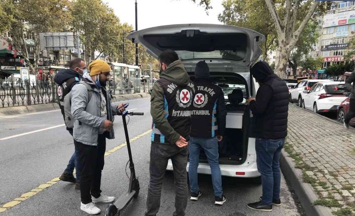 İstanbul Emniyet Müdürlüğü Trafik Şube Müdürlüğü ve Sivil Trafik Şube Müdürlüğü ekipleri tarafından Fatih’te elektrikli scooter denetimi yapıldı. Saat 11.00’de başlayan denetimde, elektrikli scooter kullanan bireyler tek tek durdurulup kontrol edildi. Yapılan denetimde elektrikli scooterlar ile ilgili olan kurallar çerçevesinde kurallara uymayan ve kullanıma yasak olan yerde kullanan ve trafikte diğer sürücülerin hayatlarını tehlikeye atan sürücülere 314 TL idari para cezası kesildi.