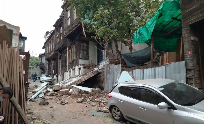 Fatih’te, iki katlı metruk binanın yan cephesi çöktü. Olayda kimse yaralanmazken bir araçta maddi hasar meydana geldi.