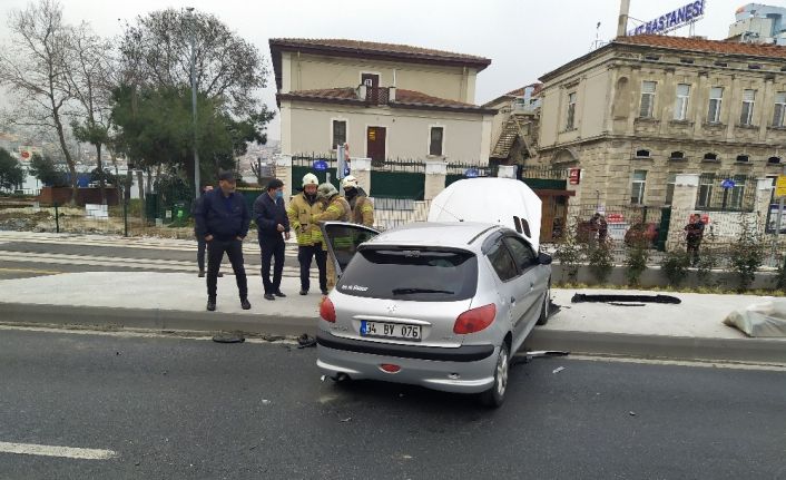 Fatih’te otomobilin yoldan çıkma anı kamerada