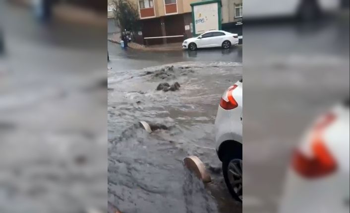 Fatih’te sağanak yağış başladı, Bayrampaşa’da rögar taştı