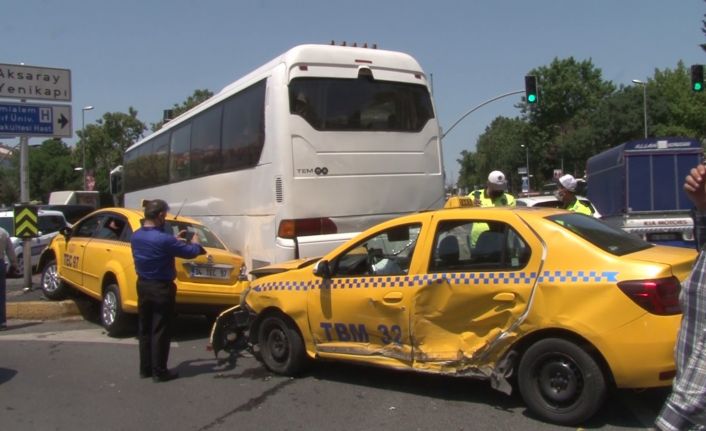 Olay, bugün öğlen saat 12.30’da meydana geldi. Edinilen bilgiye göre, Vatan Caddesi’nden Bayrampaşa istikametine dönmek isteyen ve yerli turist taşıyan 54 ABB 460 plakalı otobüse, aynı güzergahta seyir halinde bulunan Yusuf Ulucan idaresindeki 34 TEC 97 plakalı ticari taksi ile Bülent Karakaya’nın kullandığı 34 TBM 32 plakalı ticari taksi çarptı. Çarpmanın etkisiyle her iki taksinin sürücüsü ve bir takside bulunan yolcu Dilek Karabulut yaralandı. Çevredeki vatandaşlar durumu polis ve itfaiye ekiplerine haber verdi. İhbar üzerine olay yerine itfaiye, polis ve sağlık ekipleri sevk edildi. Yaralılar, olay yerindeki ilk müdahalenin ardından çevredeki hastanelere götürüldü. Kazaya karışan araçların olay yerinden kaldırılmasıyla trafik normale döndü.