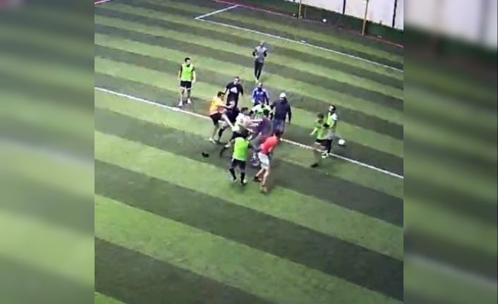 Maç esnasında yapılan faul sonrasında sahanın biranda karışarak adeta boks ringine döndüğü anlar ise güvenlik kamerasınca kaydedildi. Görüntülerde; yapılan faulün ardından iki grubun birbirine girdiği anlar yer alıyor. Sahanın karıştığını gören diğer vatandaşların olayı ayırmak için içeriye girmesi ve kavganın bir türlü son bulmaması üzerine ise halı saha işletmecisinin ışıkları kapatması görüntülere yansıdı.