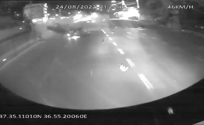 Kaza anı, kazaya karışan halk otobüsünün içindeki güvenlik kamerasına da yansıdı. Görüntülerde Otomobilin orta refüjdeki aydınlatma direğine çarpması ve otobüse çarpıp aşağı doğru inmesi görüldü.