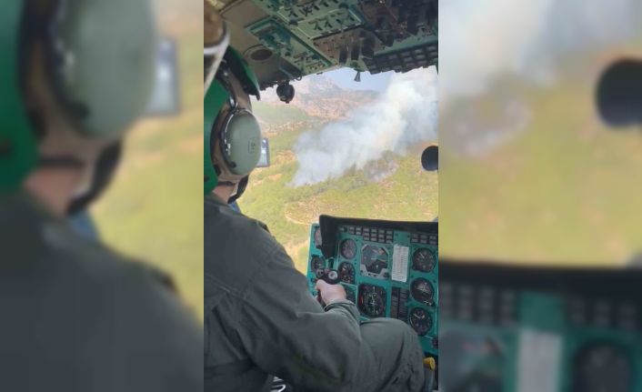 Adana’nın Feke ilçesine ormanlık alanda çıkan yangına havadan da müdahale başladı.