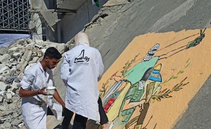Gazze Şeridi’nde yaşayan Filistinliler, İsrail saldırılarında hayatını kaybedenleri anmak ve İsrail’in sivillere hedef alan saldırılarına tepki göstermek amacıyla bina enkazı üzerine grafiti yaptı. Grafitiler, gönüllü Filistinliler ve grafiti sanatçıları tarafından yapıldı.