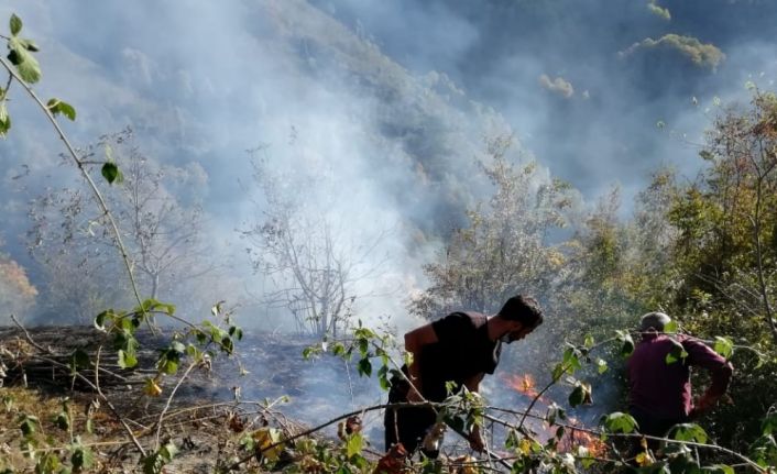 Samsun’un Ayvacık ilçesinde fındık bahçesinde çıkan yangında fındık ağaçları zarar gördü.