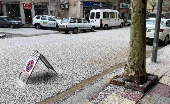 Fındık büyüklüğünde yağan dolu ilçeyi beyaza bürüdü