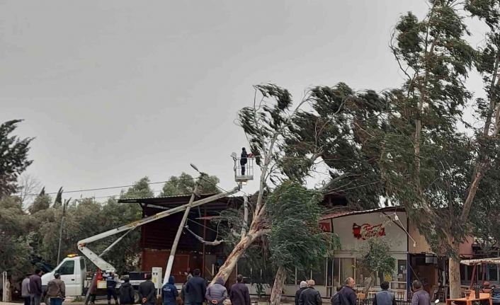 Kuvvetli fırtına, Tire’de herkese zor anlar yaşattı. Saraybosna Caddesi’nde kökünden sökülen bir ağaç, yolun trafiğe kapanmasına sebep oldu. Kuvvetli rüzgar, bazı bölgelerde de çöp konteynerlerini devirdi. Zaman zaman kuvvetini artıran rüzgar yeni açılan öğrenci yurdunun da çatısını vurdu. Yurt çatısının bir kısmı rüzgarın etkisiyle bağlı olduğu yerden ayrılarak bahçeye düştü. Olayda şans eseri yaralanan olmadı. Belediye ekipleri, gün boyu yaşanan olumsuzluklara müdahale etmek için adeta zamanla yarıştı.