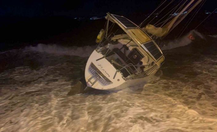 Muğla’nın Milas ilçesinde etkili olan kuvvetli fırtına, kıyıda demirli milyonluk tekneyi karaya sürükledi.