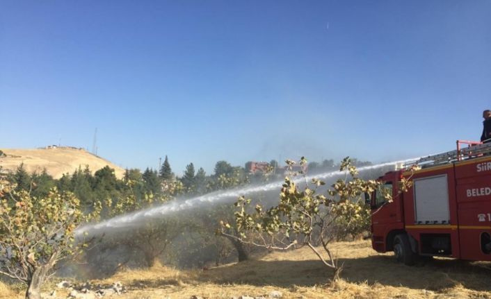 Siirt’te fıstık bahçesinde henüz bilinmeyen bir nedenden dolayı yangın çıktı. Yangında birçok fıstık ağacı hasar gördü.