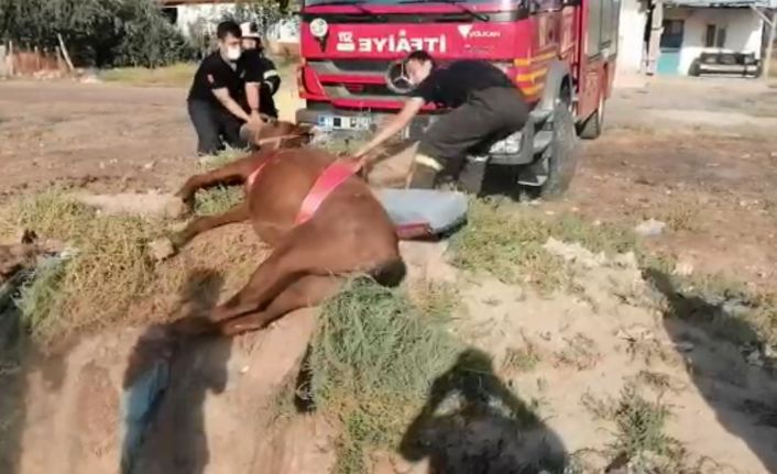 Aksaray’da fosseptik çukuruna düşen at itfaiye ekipleri tarafından kurtarıldı.