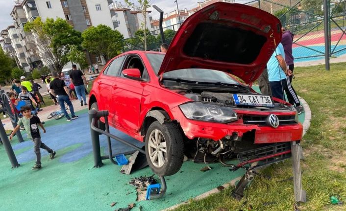 Aksaray’da fren yerine gaza basan kadın sürücünün kullandığı otomobil, millet bahçesine girdi. Hızını alamayan otomobil spor aletlerinin üzerinde asılı kaldı.