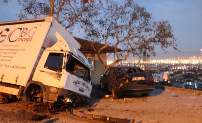 Kocaeli’nin Körfez ilçesinde freni boşalan kamyon, önce yol kenarındaki kömürlüğe sonra park halindeki otomobile çarptı. Kaldırımdaki vatandaşların ezilmekten son anda kurtulduğu kazada 1 kişi yaralandı.