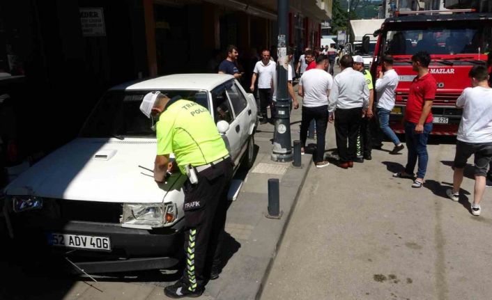 Kaza, Altınordu ilçesi Zübeyde Hanım Caddesi üzerinde meydana geldi. Edinilen bilgiye göre, ehliyetsiz A.K.’nin kullandığı 52 ADV 406 plakalı otomobilin iddiaya göre gaz teli takılı kaldı. Bu esnada kontrolden çıkan otomobil kaldırıma çıktı. Otomobil, kaldırımda dolmuş bekleyen yabancı uyruklu Hasan A.(43) ile buradaki mağazada çalışan Buse K.’ye çarptı. Yaralılar, ihbar üzerine olay yerine gelen sağlık ekipleri tarafından çeşitli hastanelere kaldırıldı.
