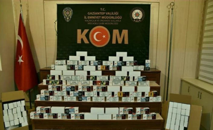 Gaziantep Emniyeti KOM Şube Müdürlüğü ekiplerince Şehitkamil İlçesinde bandrolsüz makaron satıldığı tespit edilen bir işyerinde yapılan aramada 46 bin 800 boş, 2 bin 700 dolu olmak üzere toplamda 49 bin 500 makaron ele geçirildi.