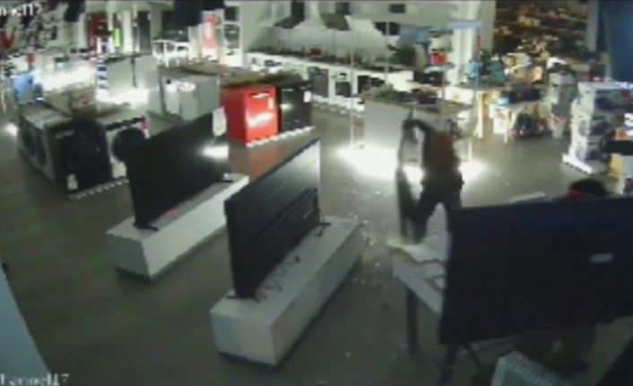 Milyonluk hırsızlık anları ise güvenlik kameralarına saniye saniye yansıdı. Görüntülerde, kamyonetle mağazaya yanaşan şüpheli şahısların, camı çerçeveyi indirdikten sonra içeri girerek ellerine aldıkları her şeyi çalma anları yer aldı.
