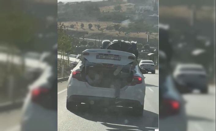 Olay, Gaziantep’te Oğuzeli Merinos kavşağında meydana geldi. Seyir halinde ilerleyen otomobilin bagajında oturan 2 kişinin tehlikeli yolculuğu yürekleri ağıza getirdi. Seyir halindeki otomobilin bagajında oturanlar, çevredeki araçları ve kendi canlarını tehlikeye atarak kazaya davetiye çıkartırken, o anlar başka bir sürücü tarafından cep telefonu kamerası ile saniye saniye kaydedildi.