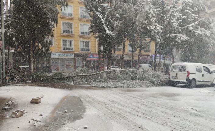 Gaziantep’te yoğun kar yağışı nedeniyle ağaçlar devrildi