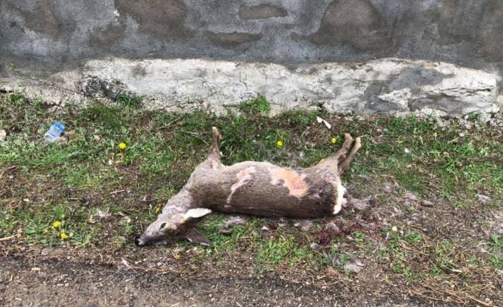 Bartın’da kaçak avcı tarafından vurularak yaralanan gebe karaca can çekişerek telef oldu.