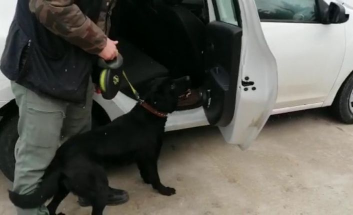 Amasya’nın Merzifon ilçesinde ‘Gece’ isimli narkotik köpeği, bir otomobile gizlenen 462 adet uyuşturucu hapı buldu.