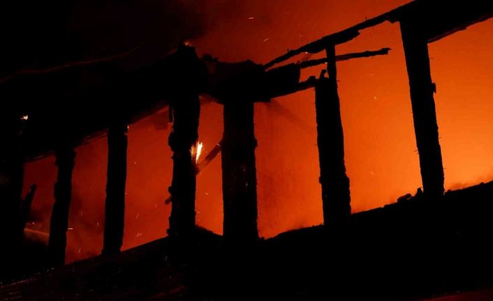 Edirne’de, metruk durumunda bulunan iki katlı tarihi ahşap bina alevlere teslim oldu.