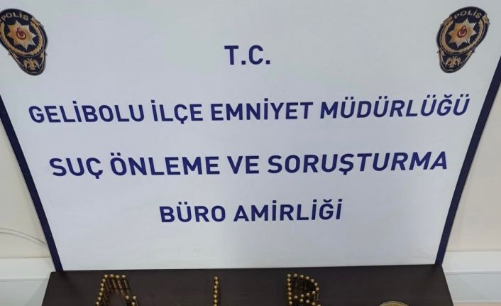 Gelibolu ilçe Emniyet Müdürlüğü Suç Önleme ve Soruşturma Büro Amirliği ekipleri uyuşturucu madde satışına yönelik çalışma çerçevesinde şüpheli Ç. Ş. üzerinde yapılan aramada uyuşturucu madde ele geçirdi. Şüphelinin ikametinde yapılan aramada 4.08 gram kubar esrar, 24.62 gram esrar, 15.8 gram skunk, 18.67 gram toz esrar, 16 extacy hap, 100 adet 9.9 mm fişek ele geçirildi. İkamette yapılan arama sırasında T.A. (39) ve B.K. (30) gözaltına alındı.
