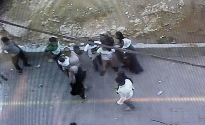 Şanlıurfa’da genç kadının oğlu ile birlikte komşuları tarafından darp edildiği anlar kameraya yansıdı.