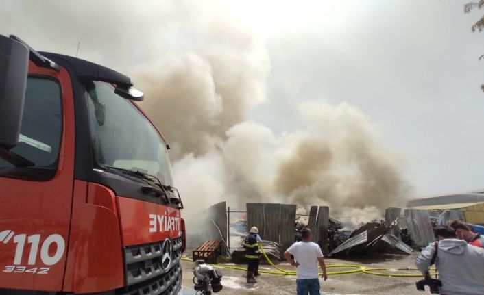 Geri dönüşüm deposunda çıkan yangında soğutma çalışmaları devam ediyor.